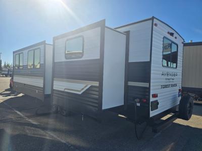 With any Avenger travel trailer by Prime Time RV, you will find innovation, a solid build, and comfort at every turn. Each model is built with Tuff Coat on the exterior metal, a fully enclosed underbelly, and a PVC roof membrane to help extend the life of your trailer. You will also find automotive name badging on the exterior, along with an exterior shower, front rail LED light strips, plus an XL padded entry grab handle to name a few conveniences. There are plenty of storage spaces inside, as well as Congoleum flooring and woven PVC marine grade slide out flooring, a designer shower surround, and seamless pressed countertops. You are sure to appreciate the onboard water filtration system, tankless water heater, plus 30K BTU furnace and 15K ducted A/C to help keep you comfortable.