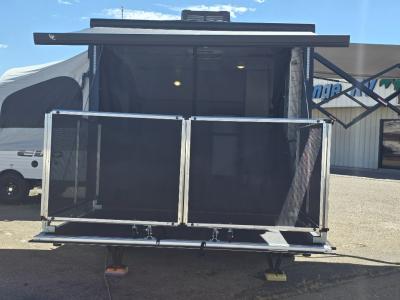Get ready for a great camping experience where you can take along your favorite ride-on toys, kayaks, or other items that you may not normally have room to load as this toy hauler features a 6' 9" cargo width and 10' 11" cargo length. Once unloaded, set up with the rear bed that will make for a great night's rest. The front of this unit is shared with the wet bath and kitchen. Here, you can make meals on the two burner stove or in the microwave oven, and there is a refrigerator for perishables. And when the optional tent bed is added on this model, you can sleep more campers!
